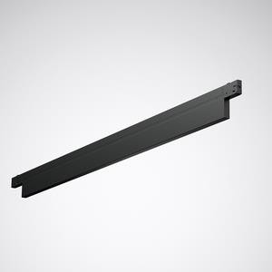 Stromschienen-Leuchte für 3-Phasen-Stromschiene. System Rail (Stucchi). Wallwasher für die Stromschiene zur besonders gleichmäßigen und klaren Ausleuchtung von Wänden, Grafiken und Abbildungen. Befestigung an 3-Phasen-Stromschiene gemäß DIN EN 60570 mittels integriertem 3-Phasen-Stromschienenadapter. Bei der Planung ist die Polarität des Nullleiters zu beachten. Lage der Polarität, siehe rote Markierung in der Maßskizze. Wallwasher mit asymmetrischer Lichtstärkeverteilung. Leuchtenlichtstrom und Lichtfarbe fest eingestellt. Bemessungslichtstrom 1900 lm, Bemessungsleistung 23 W, maximale Leuchten-Lichtausbeute 83 lm/W. Lichtfarbe warmweiß, ähnlichste Farbtemperatur (CCT) 2700 K, allgemeiner Farbwiedergabeindex (CRI) Ra > 90. Farborttoleranz (initial MacAdam) = 3 SDCM. Mittlere Bemessungslebensdauer L80 (tq 25 °C) = 50.000 h. Flimmern: Pst LM = 1,0 bei Volllast. Stroboskop-Effekt: SVM = 0,4 bei Volllast. Leuchtenkörper feinstruktur-pulverbeschichtet. Aus Aluminium. Oberfläche schwarz beschichtet (ähnlich RAL 9005). Leuchtenmaße (L x B x H): 1130 mm x 14 mm x 70 mm. Schutzklasse (EN 61140): II, Schutzart (DIN EN 60529): IP20, Stoßfestigkeitsgrad nach IEC 62262: IK02, Prüftemperatur Glühdrahttest gemäß IEC 60695-2-11: 650 °C. Zulässige Umgebungstemperatur (ta): 25 °C Gewicht: 0,9 kg. Mit elektronischem Betriebsgerät, digital dimmbar (DALI). Betriebsgerät gemäß DALI-2-Standard (EN 62386). Das Produkt erfüllt die grundlegenden Anforderungen der anwendbaren EU-Richtlinien und des Produktsicherheitsgesetzes und trägt die CE-Kennzeichnung.