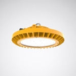 Robuster, runder Hallenstrahler für explosionsgefährdete Bereiche. Geeignet für den Einsatz in Bereichen die im Normalbetrieb gelegentlich durch brennbare Staubwolken explosionsgefährdet sind (Zone 21 / 22). Geeignet für den Einsatz in Bereichen die im Normalbetrieb gelegentlich durch Gase, Dämpfe oder Nebel explosionsgefährdet sind (Zone 1 / 2). ATEX-Kennzeichen II 2G Ex eb ib mb op is IIC T4 Gb / II 2D Ex tb op is IIIC T121°C Db / -32°C = Ta = +70°C. Für die abgehängte Montage, Ringöse aus rostfreiem Edelstahl im Lieferumfang enthalten. Wand-, Decken-, Mast- und Rohrmontage mittels separat zu bestellendem Zubehör möglich. Mit lambertscher Lichtstärkeverteilung. Leuchtenlichtstrom und Lichtfarbe fest eingestellt. Bemessungslichtstrom 9600 lm, Bemessungsleistung 60 W, maximale Leuchten-Lichtausbeute 160 lm/W. Lichtfarbe , ähnlichste Farbtemperatur (CCT) , allgemeiner Farbwiedergabeindex (CRI) Ra > 80. Farborttoleranz (initial MacAdam) = 3 SDCM. Mittlere Bemessungslebensdauer L80 (tq 25 °C) = 70.000 h. Flimmern: Pst LM = 1,0 bei Volllast. Stroboskop-Effekt: SVM = 0,4 bei Volllast. Leuchtenkörper aus einer kupferfreien Aluminiumlegierung mit witterungs- und korrosionsbeständiger Oberfläche. Oberfläche signalgelb beschichtet (ähnlich RAL 1003). Abdeckscheibe aus gehärtetem Glas. Leuchtendurchmesser 380 mm, Leuchtenhöhe 125 mm. Schutzklasse (EN 61140): I, Schutzart (DIN EN 60529): IP6667, Stoßfestigkeitsgrad nach IEC 62262: IK10. Zulässige Umgebungstemperatur (ta): -32 °C bis 70 °C. Gewicht: 6,4 kg. Eine Anschluss-Verschraubung (PA) ist im Lieferumfang enthalten. Mit elektronischem Betriebsgerät, schaltbar. Das Produkt erfüllt die grundlegenden Anforderungen der anwendbaren EU-Richtlinien und des Produktsicherheitsgesetzes und trägt die CE-Kennzeichnung.