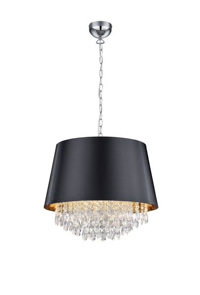| Kurzbeschreibung | Pendel LORELEY,3xE14/excl.LM|Stoffsch.schwarz/innen goldf.|H.28cm,Acryldeko klar |