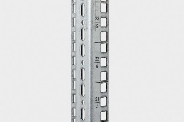 Vertikale Montageleiste. Kennzeichnung der Höheneinheiten durch Laser.