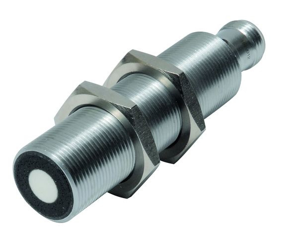 Ultraschallsensor, Reflexionstaster, max. Reichweite 1300 mm, Glatte Schallwandlerfront, Zylindrische Bauform M18, vergossen, Anschluss über M12x1 Steckverbinder, Teachbereich über Adapter einstellbar, Temperaturkompensation, Blindzone: 15cm, Reichweite: 130cm, Auflösung: 1mm, Öffnungswinkel der Schallkeule: +/- 16°, 2x Schaltausgänge, PNP, Parametrierbar Schließer/Öffner