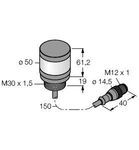 LED-Signalleuchte, Hochintensive Signalsäule, Leitungslänge0,15 m, Schwarzes Kunststoffgehäuse, Schutz gegen elektromagnetische und hochfrequente Störungen, Schutzart IP67, Kabel mit Stecker M12X1, 150 mm, Einfarbig: Rot (COL 1), Betriebsspannung: 18…30 VDC oder 24 VAC bei jeweils 45mA pro LED-Farbe, Eingänge: PNP / NPN