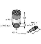 LED-Signalleuchte, Einfarbige Multifunktionsanzeige mit Signaltongeber, Leitungslänge0,15 m, Schwarzes Kunststoffgehäuse, Schutz gegen elektromagnetische und hochfrequente Störungen, Schutzart IP50, Kabel mit Stecker M12X1, 150 mm, Einfarbig: Rot (COL 1), Betriebsspannung: 18…30 VDC oder 24 VAC bei jeweils 45mA pro LED-Farbe, Eingänge: PNP / NPN, Signaltongeber max. 92 dB