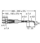 Glas-Lichtleiter, Gabelleiter, Betriebsart: Reflexionslichttaster / -schranke, Edelstahlummantelung, flexibel, Betriebstemperatur Lichtleitermantel: -140…+249 °C, Fühler-Endhülse: Edelstahl, abgewinkelt (90°), Betriebstemperatur Lichtleiterspitze: -140…+249 °C: , Lichtleiter-Bündeldurchmesser: 3.2 mm, Gesamtlänge des Lichtleiters: ± 914 mm