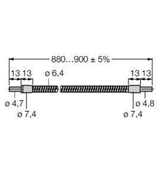 Glas-Lichtleiter, Einzelleiter, Betriebsart: Einweglichtschranke, Edelstahlummantelung, flexibel, Betriebstemperatur Lichtleitermantel: -140…+249 °C, Fühler-Endhülse: Edelstahl, glatt, Betriebstemperatur Lichtleiterspitze: -140…+249 °C, Lichtleiter-Bündeldurchmesser: 3.2 mm, Gesamtlänge des Lichtleiters: ± 914 mm