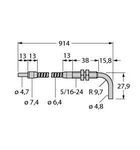 Glas-Lichtleiter, Einzelleiter, Betriebsart: Einweglichtschranke, Edelstahlummantelung, flexibel, Betriebstemperatur Lichtleitermantel: -140…+249 °C, Fühler-Endhülse: Messing, Gewinde 5/16”-24, abgewinkelte Glatthülse (90°), Betriebstemperatur Lichtleiterspitze: -140...+249 °C, Lichtleiter-Bündeldurchmesser: 3.2 mm, Gesamtlänge des Lichtleiters: ± 914 mm