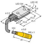 Opto-Sensor, Winkellichttaster, Miniatursensor, max. Reichweite 30 mm, Brennweite 30 mm, Leitungslänge0,15 m, Kabel mit Steckverbinder, PVC, 150 mm, M8 x 1, 3-polig, Betriebsspannung: 10…30 VDC, Sehr flache Bauform, PNP-Schaltausgang, hellschaltend