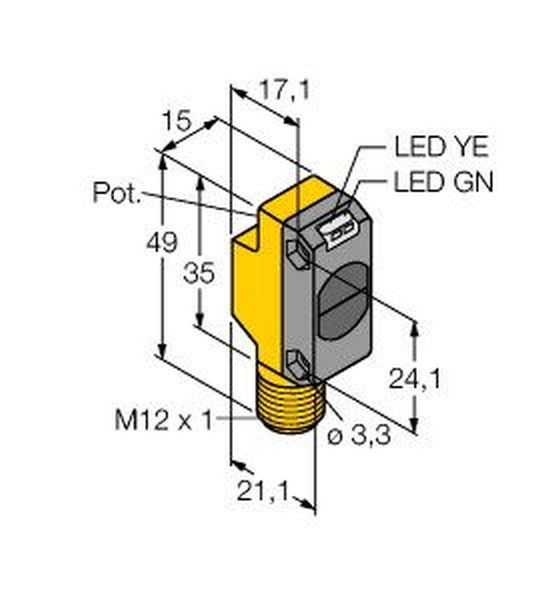 | Kurzbeschreibung | Opto-Sensor, Einweglichtschranke (Sender), max. Reichweite 3000 mm, Stecker, M12 x 1, 4-polig, Schutzart IP67, LED rundum sichtbar |