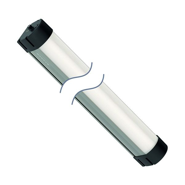 LED-Linienleuchte, im Metallgehäuse, Lichtlänge: 1100mm, Betriebsspannung: 100 - 277 VAC, Schutzart: IP50, Farbe: Weiß, Steckverbinder, Integrierter Ein/Aus-Schalter, Integrierter Drehschalter zum stufenlosen Dimmen der Lichtleistung (0 - 100%)
