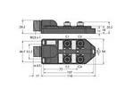 | Kurzbeschreibung | Passiver Aktuator-/Sensor-Verteiler M12 x 1, 4-fach, mit M23-Steckverbinder für die Zuleitung, Bemessungsspannung 30 V, Gehäusematerial: Nylon |
