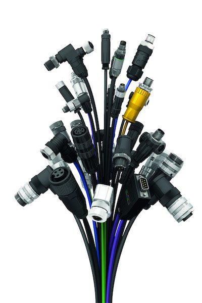 kunststoffumspritzter Rundsteckverbinder als Kupplung, PUR-Leitung, Einsatz im Schleppkettenbereich möglich