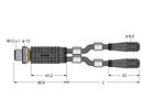 Zweifachverteiler, Y-Verteiler mit Leitung, Stecker M12x1 - 2x Kupplung Ø8mm, Bemessungsspannung 60 V, Leitungslänge1,5 m, Mantelmaterial: PVC, Mantelfarbe: schwarz, Chemikalien- und ölbeständig, Flammwidrig, Beständig gegen Säuren und Laugen, Mikroben- und hydrolysefest, LABS-frei, RoHS-konform, Schutzart IP67, 4/3-polig, Leitungslänge: 1.5 / 1.5 Meter