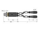 | Kurzbeschreibung | Zweifachverteiler, Y-Verteiler mit Leitung, Stecker M12x1 - 2x Kupplung Ø8mm (Zugsicherung), Bemessungsspannung 60 V, Leitungslänge0,3 m |