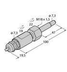 Strömungsüberwachung, Überwachungsumfang gemäß Flow Modul, Remote-Probe, Einbaubedingungen Eintauchsensor, Leitungslänge2 m, Thermodynamisches Arbeitsprinzip, Funktionsumfang gemäß Flow Modul, Erweiterter Temperaturbereich, Medientemperatur +10…+120 °C, Frei ausrichtbare Sensoreinheit, Einsteckmontage via Adapter, Einschraub-Adapter M18 x 1,5