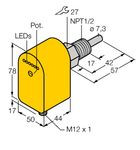 Strömungsüberwachung, Eintauchsensor mit integrierter Auswerteelektronik, Einbaubedingungen Eintauchsensor, Sensor nur für Wasser, kalorimetrische Funktionsweise, Abgleich über Potentiometer, Anzeige via LED-Kette, Linearisierter Analogausgang, DC 3-Draht, 19.2...28.8 VDC, 4...20 mA Analogausgang, Steckergerät, M12 x 1