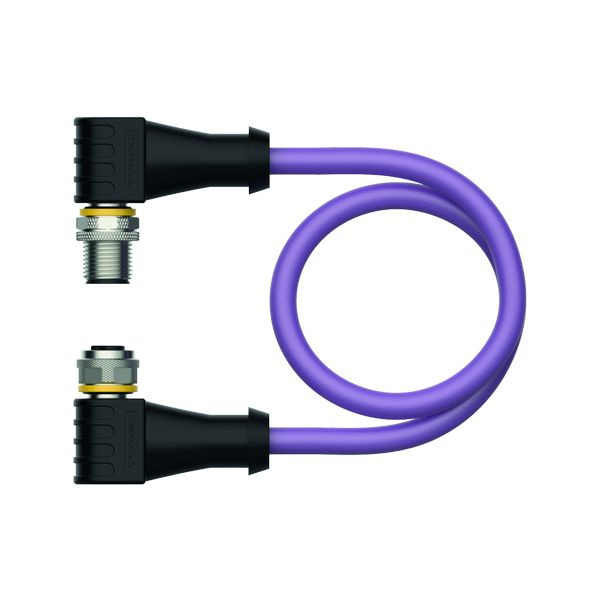 PROFIBUS-Leitung, PUR-Kabelmantel, Bemessungsspannung 60 V, Leitungslänge0,5 m, PROFIBUS-Leitung: 2 x 0.34 mm, 2, Mantelmaterial: PUR, Farbe: violett, Manteldurchmesser: 8.2 mm, Schleppkettentauglich, Chemikalien-, UV- und Ölbeständig, Flammwidrig gemäß DIN EN 60332-2-2, VDE 0482-332-2-2, IEC 60332-2-2, CSA FT-2, Halogenfrei gemäß DIN EN 50267-2-1, VDE 0482-267-2-1, IEC 60754-1, Silikon-, PVC- und LABS-frei, Mikroben- und hydrolysebeständig, RoHS-konform, UL zugelassen, Kupplung gewinkelt M12, invers kodiert, Stecker gewinkelt M12, invers kodiert, Leitungslänge: 0.5 Meter