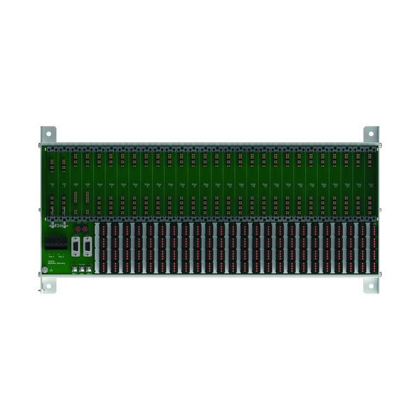 I/O-System excom, Nicht-Ex-Modulträger für 24 Module, Modulträger zur Aufnahme von bis zu 24 E/A-Modulen, 2 Gateways und 2 Netzteilen, Die Klemmen für die Signalanschlussebene sind im Zubehör erhältlich