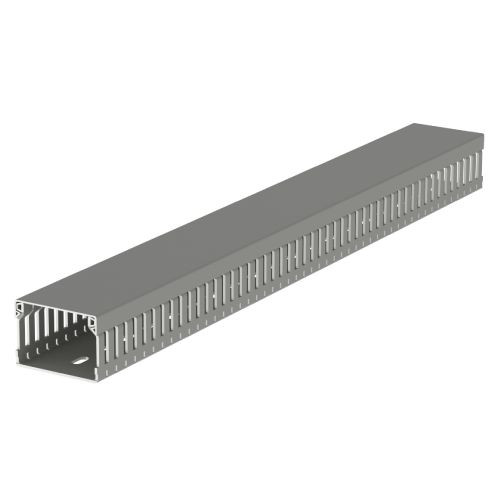 Für die Führung von Kabeln in Schalt- und Datenschränken. Montage auch bei hängender Installation möglich. Isolierendes Material. Lieferlänge: 2m. Farbe: grau. Sicherheit gegenüber Feuer: Glühdrahtversuch 960°C; nicht flammenausbreitend gemäß EN 50085-2-3:2010. Bequeme Installation und Wartung. Einfache Montage und Demontage des Deckels. Betriebssicherheit und Kostensenkung: ohne scharfe Kanten. Seitenlaschen mit großer Flexibilität und der Möglichkeit zum Biegen oder Ausbrechen. Die Seitenlaschen verletzen weder Hände noch Kabel.