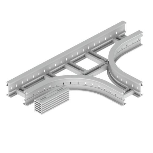 Element zur Ausführung von 90°-Abzweigungen. Krümmungsradius von 300 mm. Stoßstellenverbinder sind zur einfachen Montage im Lieferumfang enthalten. Isolierendes Material. Farbe: Lichtgrau RAL 7035