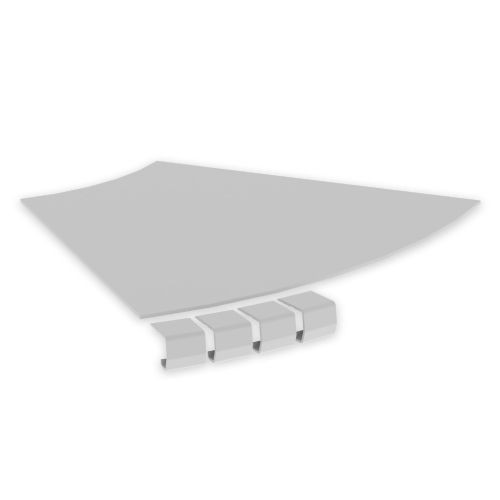 Abdeckung, die ohne Schrauben unter Druck auf die Flachbogen von 90° und 45° mit einem Radius von jeweils R300 mm montiert wird und die Installation vor möglichen Schäden an der Kabelführung schützt. Halogenfreies isolierendes Material. Farbe: Lichtgrau RAL 7035