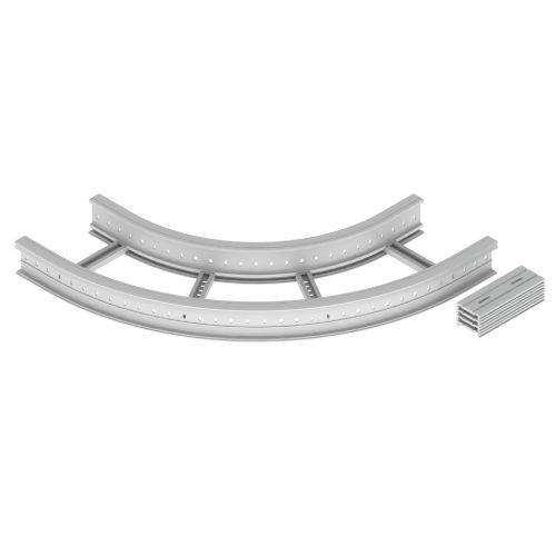 Flachbogen zur Ausführung von 90°-Drehungen. Es wird empfohlen, Träger unter den Bogen anzubringen. Krümmungsradius von 600 mm. Stoßstellenverbinder sind zur einfachen Montage im Lieferumfang enthalten. Isolierendes Material. Farbe: Lichtgrau RAL 7035