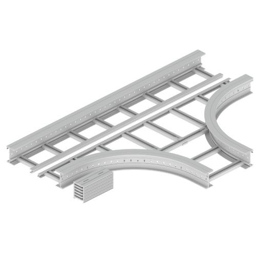 Element zur Ausführung von 90°-Abzweigungen. Krümmungsradius von 600 mm. Stoßstellenverbinder sind zur einfachen Montage im Lieferumfang enthalten. Isolierendes Material. Farbe: Lichtgrau RAL 7035