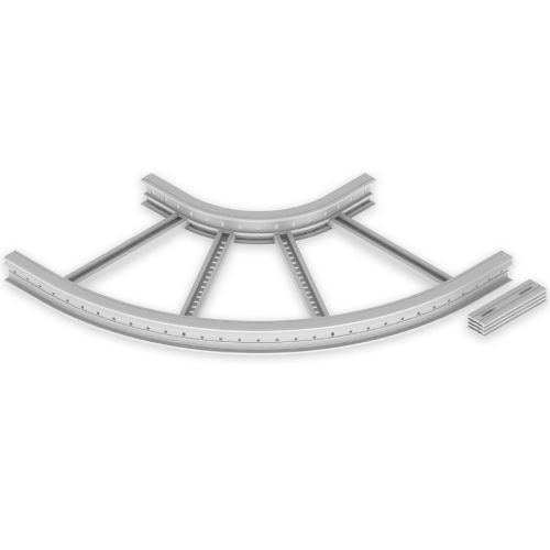 Flachbogen zur Ausführung von 90°-Drehungen. Es wird empfohlen, Träger unter den Bogen anzubringen. Krümmungsradius von 300 mm. Stoßstellenverbinder sind zur einfachen Montage im Lieferumfang enthalten. Halogenfreies isolierendes Material. Farbe: Lichtgrau RAL 7035