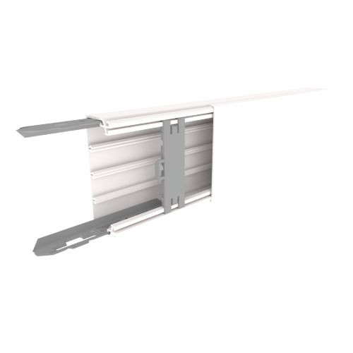 Für die Kabelführung und -verteilung mit außenliegender Abdeckung. Für den Einsatz im Außenbereich geeignet. Flexible Kammeraufteilung für die Führung und den Schutz von elektrischen Kabeln und Telekommunikationsleitungen. Bodenlochung alle 250mm. Es werden 1 Klammer und 2 vormontierte Verbinder je 0,5m Kanal mitgeliefert. Lieferlänge: 3m. Mechanische Sicherheit: Schutzgrad gegen äußere mechanische Beanspruchung Schlagfestigkeit IK08. Elektrische Sicherheit: Isolierendes Material; IP4X bei Montagen an der Wand. Verhalten gegenüber Feuer: Glühdrahtversuch bei 960°C - nicht flammenausbreitend. Die Abdeckung wird durch Aufdruck montiert. Ein Nachschieben der Abdeckung ist nicht notwendig. Die Klammer hält die Kabel zurück und sorgt für einen sicheren Halt der Abdeckung auch unter anspruchsvollsten Bedingungen. Die Verbinder ermöglichen eine perfekte Ausrichtung und somit eine einfache Montage und Befestigung der Kanalböden auf den Untergrund. Kanal und Formteile sind lackierbar. Bewegbare Trennwand mit frontaler Montage. Farbe: reinweiß