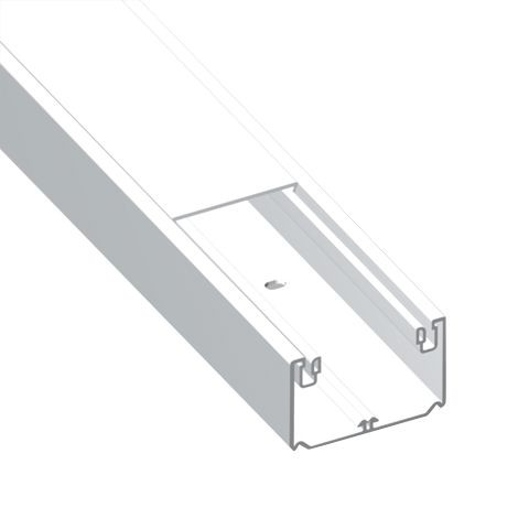 Für den Einbau handelsüblicher Installationsgeräte. Für Inneninstallationen. Mit innenliegenden Abdeckung, unterteilbar mit Trennwand. Bodenlochung alle 250mm. Lieferlänge: 2m. Farbe: reinweiß. Elektrische Sicherheit: Isolierendes Material; IP4X Schutz gegen äußere mechanische Beanspruchung (DIN EN 50085-2-1:2006) bei Montagen an der Wand. Mechanische Sicherheit: Schutzgrad gegen äußere mechanische Beanspruchung (Schlagfestigkeit IK10). Glühdrahtversuch 960°C und nicht flammenausbreitend gemäß EN 50085-2-1:2006). Witterungsverhalten. Beständig gegenüber Chemikalien. Recyclebar. Einfache Montage. Einfache Montage. Frontale Montage der Abdeckung und der Stoßstellenabdeckung. Einfaches Integrieren in andere Bauelemente (Mobiliar, Trenn- und Zwischenwände, usw.) Homogener Farbton bei Formteilen, Abdeckungen und Kanal. Lackierbar. Schutzfilm.