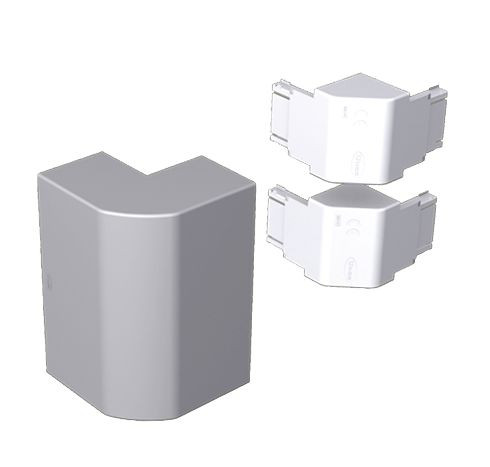 Um ungenaue Schnittkanten der Abdeckungen und des Kanalunterteils abzudecken. Farbe: weißaluminium RAL9006. Isolierendes Material. Einfache Montage. Das Außenteil deckt die ungenauen Schnittkanten der Abdeckungen und des Kanalunterteils ab. Kann seitlich geschnitten werden, um ein Einbauen oder Abzweigen zu ermöglichen. Schutz gegen äußere mechanische Beanspruchung IK07.