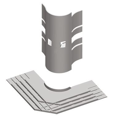 Für die Einhaltung eines angemessenen Radiuses in Telekommunikationsleitungen. Farbe: grau. Isolierendes Material. Schutzart von Kabeln in Telekommunikationsleitungen. Einfache Montage.