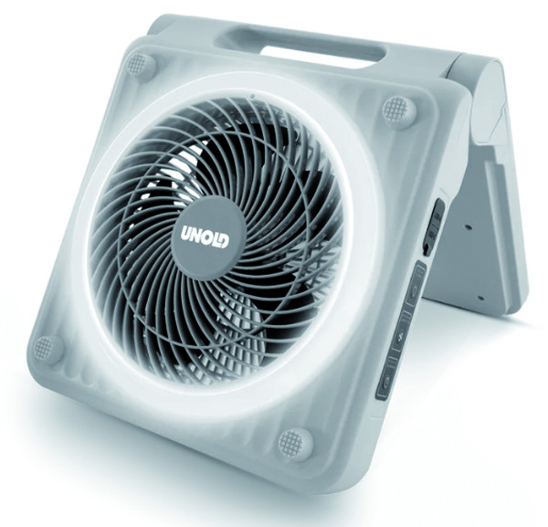Akku-Solar-Ventilator für innen und außen, 5-stufige Geschwindigkeitsregelung per Tastendruck, Timerfunktion mit automatischer Abschaltung, variable LED-Beleuchtung durch 3 einstellbare Helligkeitsstufen, aufladbar mit USB-Ladekabel oder integriertem Solarmodul aus langlebigem monokristallinem Silikon und robustem PET-Material, Li-Ion-Akku, Akkubetrieb je nach Stufe ca. 1 - 24 Stunden, Akkuladezeit ca. 4-5 Std.per USB-Ladekabel oder in etwa 10 Std. mit Sonnenenergie (abhängig von der Lichtintensität), Powerbank-Funktion (integrierte 5000-mAh Batterie für zusätzliche Energie unterwegs), inklusive USB-C-Ladekabel, Schutzklasse IPX4 - ideal bei Spritzwasser