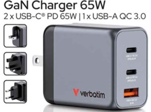 Ladeadapter GNC-65, GaN, Eingang: 100-240V, 50/60Hz (EU, UK, US), Ausgang: 1x USB-A, QC 3.0, 3.6-6.5V/3A, 6.5V-9V/2A, 9V-12V/1.5A (max. 18W), Ausgang: 2x USB-C, PD 3.0, 3.3-11V/3A, 5V/3A, 9V/3A, 12V/3A, 15V/3A, 20V/3.25A (max. 65W), Überspannungsschutz, Feuerfestes Polycarbonat, Abmessungen: 59x29x47mm, Gewicht: 105g.