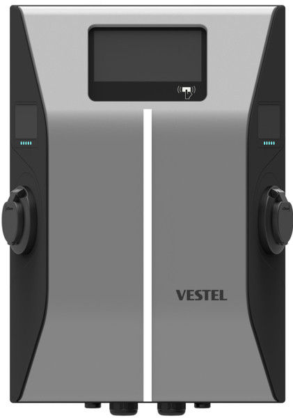 Die EVC10 Twin-Wallbox Eichrechtskonform von VESTEL verfügt über zwei Ladepunkte mit jeweils bis zu 22kW Ladeleistung. Einsatzgebiet ist der private oder halböffentliche Bereich wie z.B. auf Firmenparkplätzen, Fuhrparks oder Betriebshöfen. Der Charger bietet verschiedene Autorisierungsmöglichkeiten (u.a. Freemode, RFID-Karte, OCPP) wie auch bereits den ISO15118-2 Plug&Charge Standard. Eine einfache Konfiguration über die geräteeigene Weboberfläche sowie das übersichtliche 7" Display runden die umfangreiche Ausstattung der EVC10 Twin-Wallbox ab. mess- und eichrechtskonformer Zähler, WiFi, 4G/LTE, Modbus TCP/IP, MID, OCCP1.6, Lastmanagement, Pot.-freier Schaltkontakt (§14a EnWG), Integrierter zertifizierter MID: max. Ladeleistung (kW): 1x 22kW oder 2x 11kW, 3-phasig AC mit 2 Ladepunkten Buchse Typ2, integrierter Typ A FI-Schutzschalter, sowie integrierter DC-Fehlerstromsensor, Abmessungen HxBxT (cm): 42,5 x 60 x 23,8