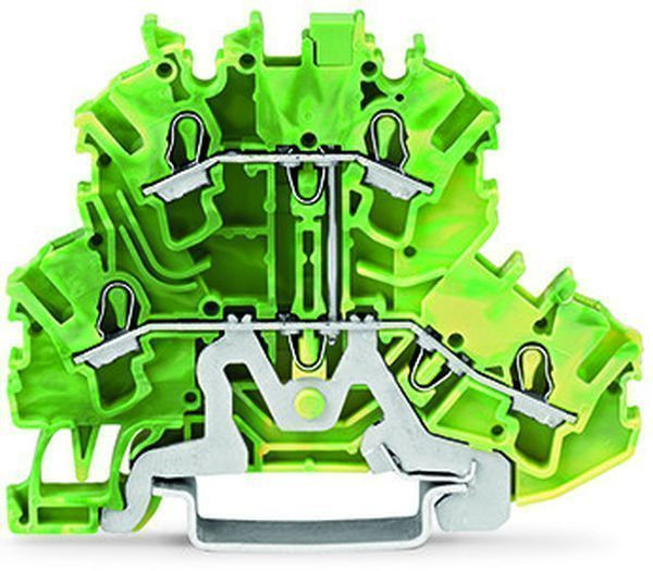 4-Leiter-Schutzleiterklemme Doppelstockklemme; 4-Leiter-Schutzleiterklemme; 2,5 mm²; PE; für Anwendungen Ex e II geeignet; ohne Beschriftungsträger; intern gebrückt; für Tragschiene 35 x 15 und 35 x 7,5; Push-in CAGE CLAMP®; 2,50 mm²; grün-gelb