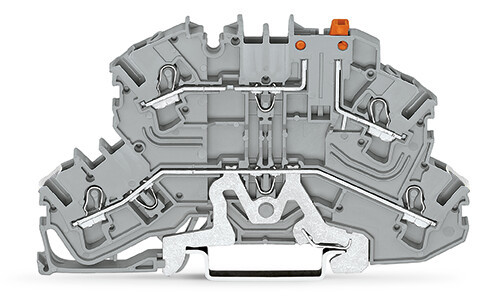 Doppelstock-Trennklemme; mit schwenkbarem Trennmesser; für Tragschiene 35 x 15 und 35 x 7,5; 2,5 mm²; Push-in CAGE CLAMP®; 2,50 mm²; grau
