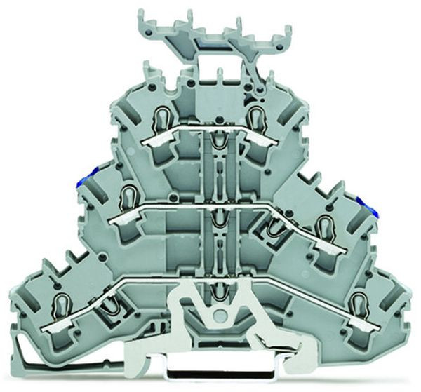 Schirmleiter-/Durchgangs-/Durchgangsklemme Dreistockklemme; Schirmleiter-/Durchgangs-/Durchgangsklemme; 2,5 mm²; Schirmung/N/L; mit Beschriftungsträger; für Tragschiene 35 x 15 und 35 x 7,5; Push-in CAGE CLAMP®; 2,50 mm²; grau