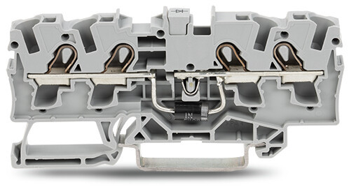 Bauelementklemme; 4 Leiter; mit Diode 1N5408; Anode links; für Tragschiene 35 x 15 und 35 x 7,5; 4 mm²; Push-in CAGE CLAMP®; grau
