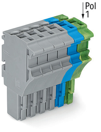 1-Leiter-Federleiste; Push-in CAGE CLAMP®; 4 mm²; Rastermaß 5,2 mm; 6-polig; 4,00 mm²; grau/blau/grün-gelb
