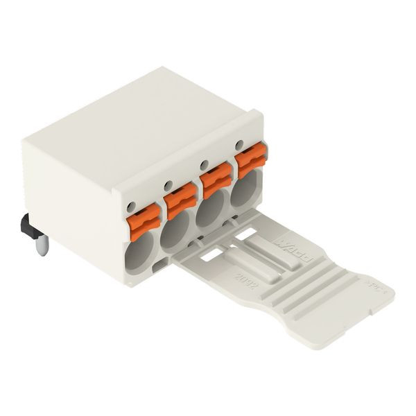 1-Leiter-THT-Federleiste, abgewinkelt; Drücker; Push-in CAGE CLAMP®; 2,5 mm²; Rastermaß 5 mm; 6-polig; Lötstift Ø 1,4 mm; Griffplatte; direkt bedruckt; 2,50 mm²; lichtgrau