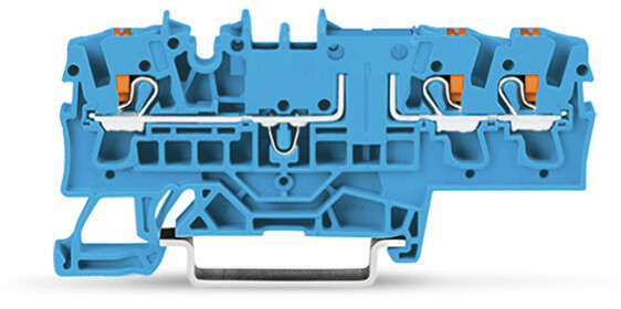 3-Leiter-Trenn- und Messklemme; mit Drücker; mit Prüfmöglichkeit; Trennmesserhalter orange; für Tragschiene 35 x 15 und 35 x 7,5; 2,5 mm²; Push-in CAGE CLAMP®; 2,50 mm²; blau