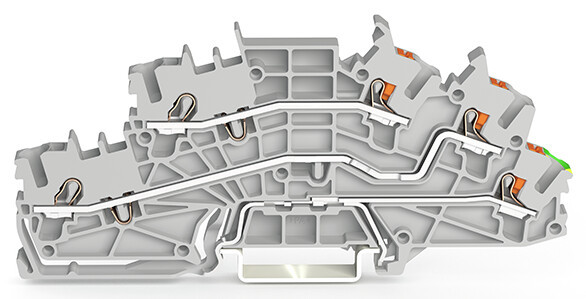 Installationsetagenklemme; mit Betätigungsöffnung und Drücker; 2,5 mm²; L/L/PE; Push-in CAGE CLAMP®; 2,50 mm²; grau