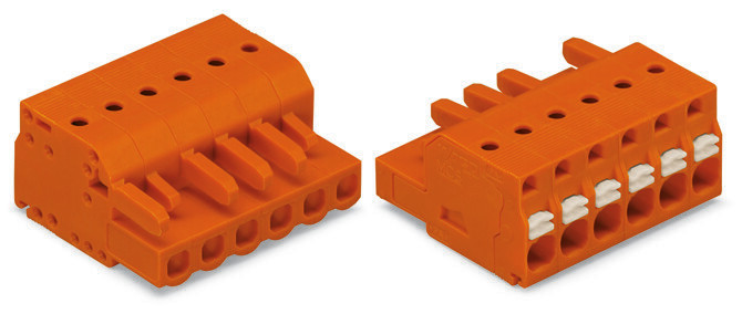 1-Leiter-Federleiste; Drücker; Push-in CAGE CLAMP®; 2,5 mm²; Rastermaß 5,08 mm; 2-polig; mit integrierter Abschlussplatte; 2,50 mm²; orange