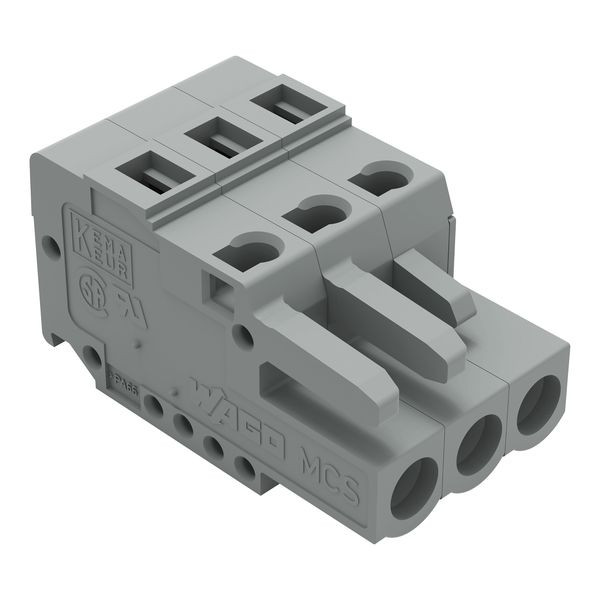 1-Leiter-Federleiste; CAGE CLAMP®; 2,5 mm²; Rastermaß 5 mm; 3-polig; mit integrierter Abschlussplatte; grau