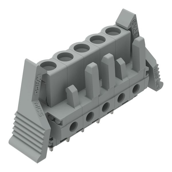 THT-Federleiste; gerade; Rastermaß 5 mm; 5-polig; Verriegelungsklinke; Lötstift 0,6 x 1,0 mm; grau