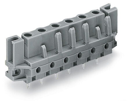 THT-Federleiste; gerade; Rastermaß 7,5 mm; 9-polig; Distanzflansch; Lötstift 0,6 x 1,0 mm; grau