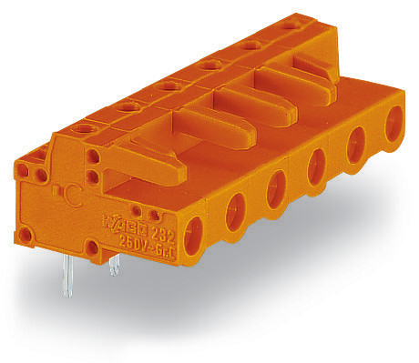THT-Federleiste; abgewinkelt; Rastermaß 7,62 mm; 7-polig; Lötstift 0,6 x 1,0 mm; orange