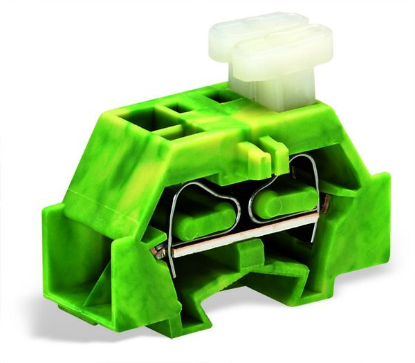 4-Leiter-Klemme; einseitig mit Drückern; mit Befestigungsflansch; 1-polig; für Schraub- u.ä. Befestigungsarten; Befestigungsloch Ø 3,2 mm; 2,5 mm²; CAGE CLAMP®; 2,50 mm²; grün-gelb
