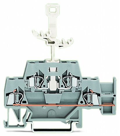 Doppelstockklemme; Durchgangs-/Durchgangsklemme; mit zusätzlicher Querbrückung im Erdgeschoss; für Tragschiene 35 x 15 und 35 x 7,5; 2,5 mm²; CAGE CLAMP®; 2,50 mm²; grau/grau