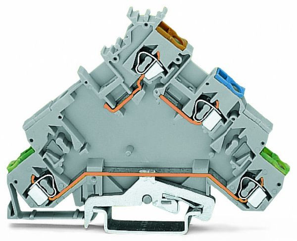 4-Leiter-Initiatoreneinspeiseklemme; mit PE-Anschluss; mit farbig bedruckten Leitereinführungen; 2,5 mm²; CAGE CLAMP®; 2,50 mm²; grau